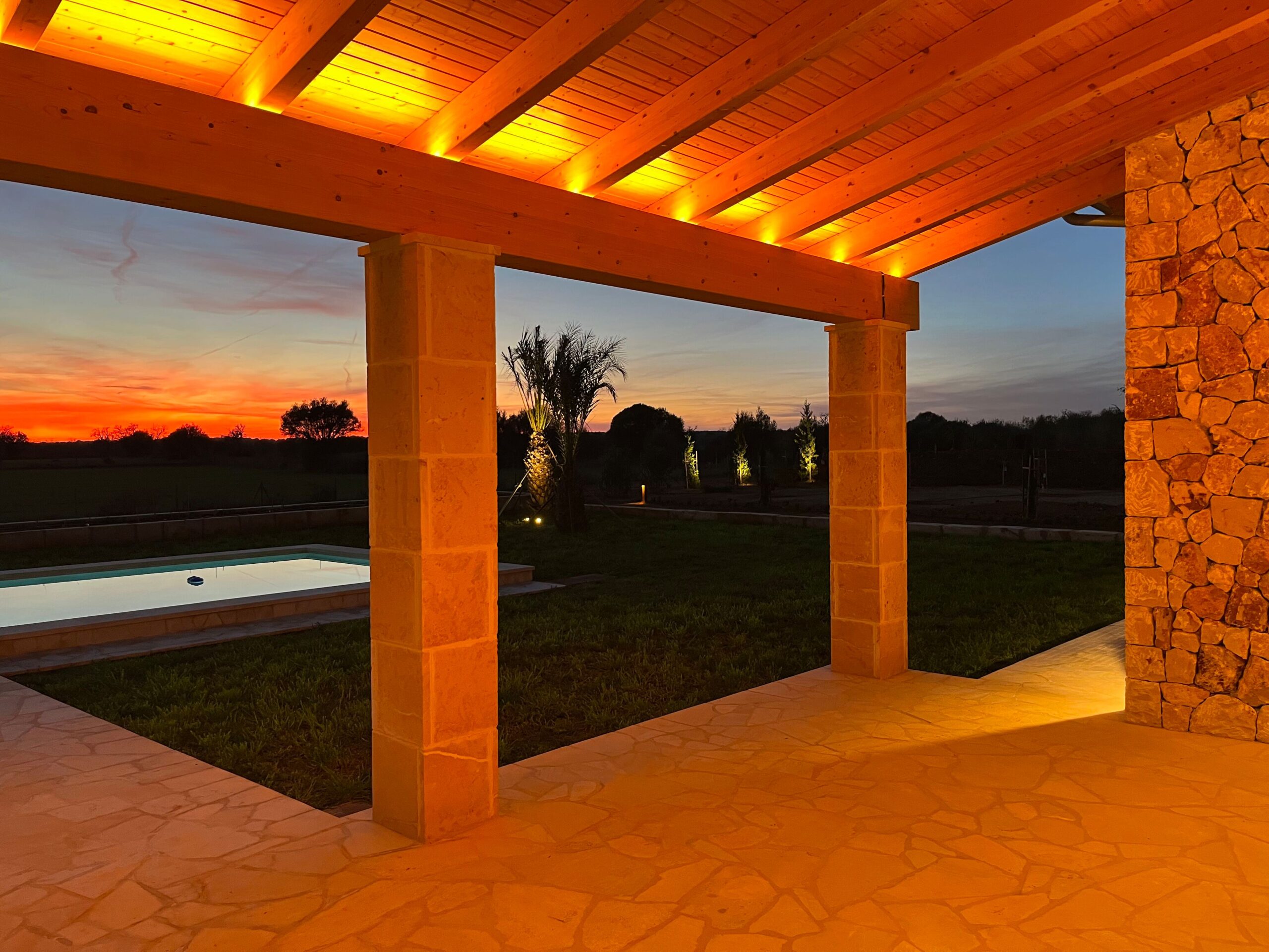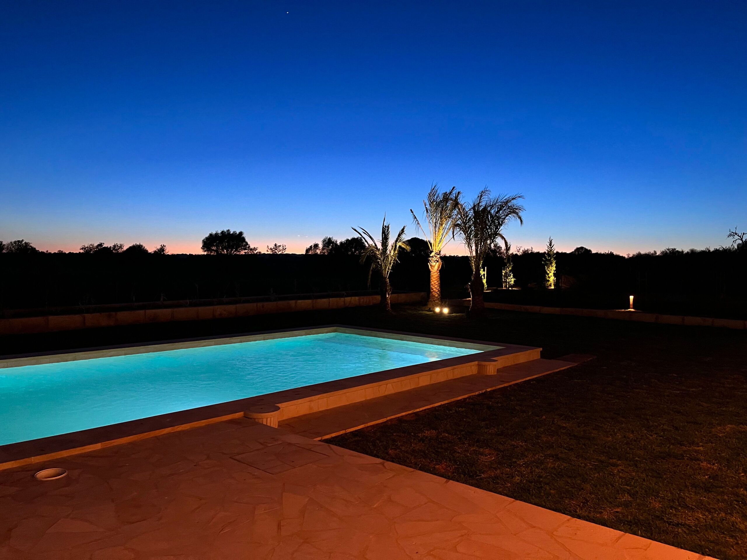 Thanks to its DALI LED lighting, the estate transforms its atmosphere when the sun goes down. Discover what life is like at Finca Es Revellar at night.